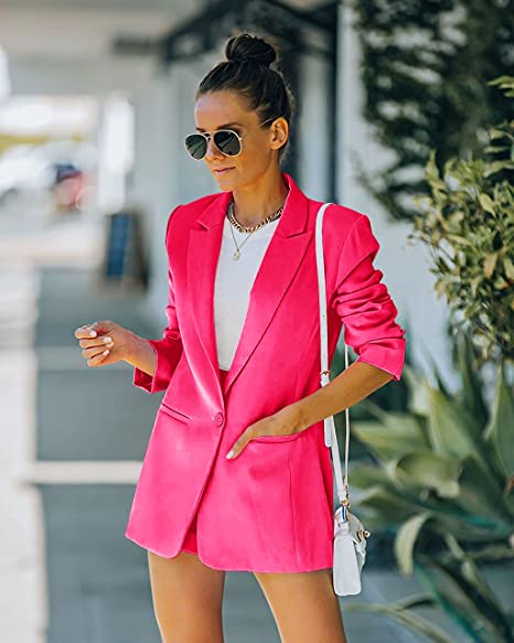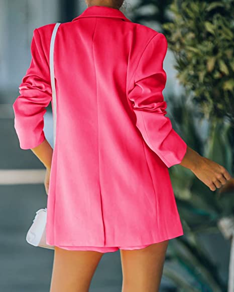 Women's 2 Piece Open Front Long Sleeve Blazer and Solid Short Pants Suit Sets